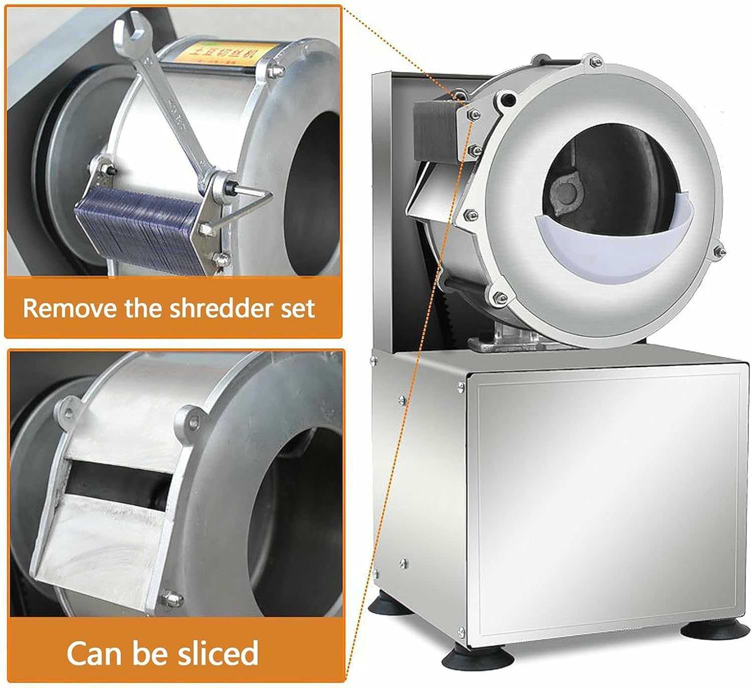 Specification: Manual model: Material: stainless steel + aluminum alloy Handle: wood Inlet diameter: 11cm Diameter of the barrel: 21cm Cutting thickness: 2-6MM (adjustable) Work efficiency: 30KG/h Size: 21x16.5x28.5cm Net weight: 3.8KG Electric models: Material: stainless steel + aluminum alloy Motor: Copper core motor Voltage:/Power: 180W Inlet diameter: 11cm Diameter of the barrel: 21cm Cutting thickness: 2-6MM (adjustable) Work efficiency: 75KG/h Size: 23x30x44.5cm Net weight: 10.5KG Due to manual measurement of the size may have an error of 1-2cm, I hope to understand.