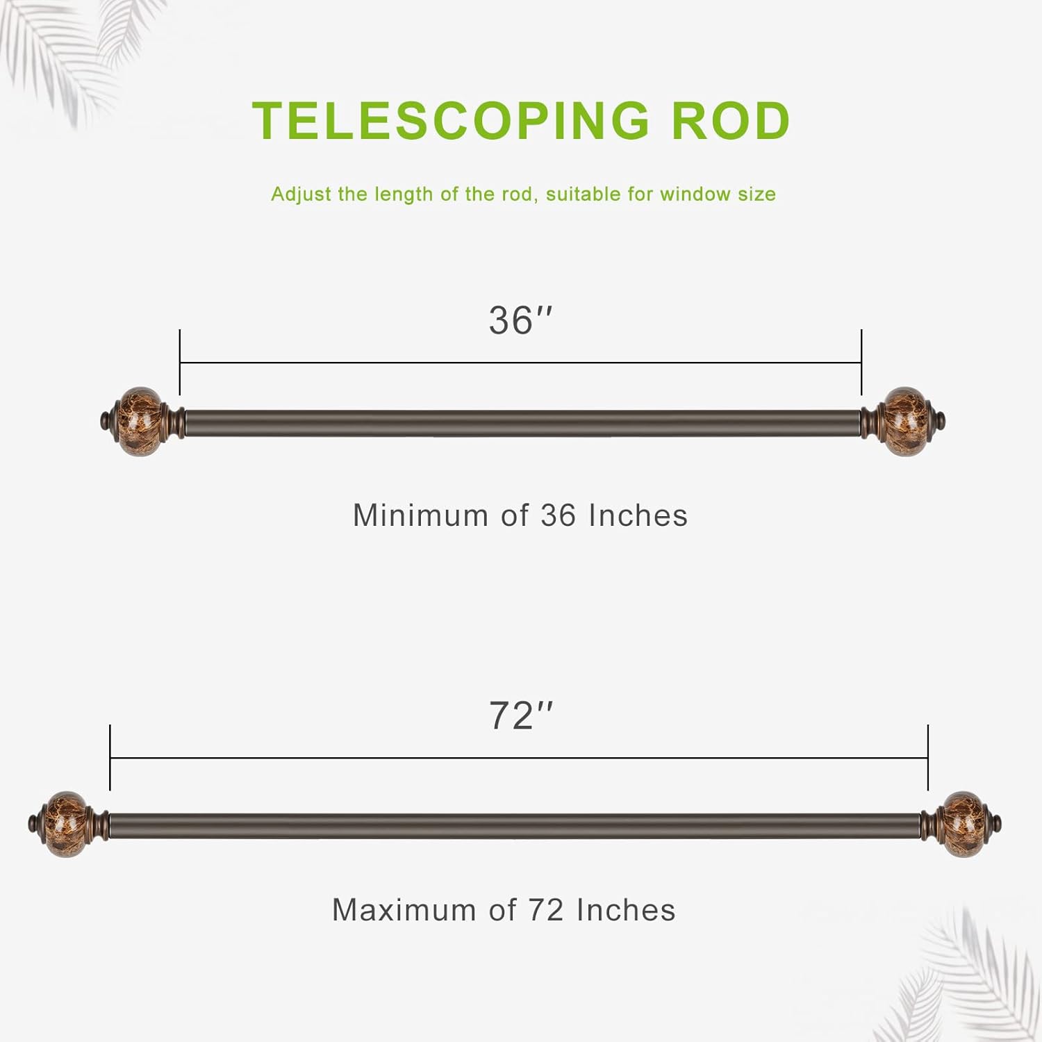 | Included Components | 2 Pack Curtain Rod,Each single curtain rod set included :1 Piece of 3/4"*37" Rod,1 Piece of 5/8"*37.5"rod,2 Pieces of Finials,2 Pieces of Curtain Rod Brackets,4 Pieces of Screw,4 Pieces of Plastic Anchor |