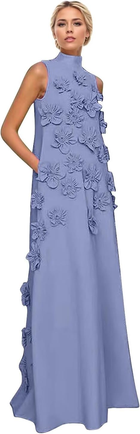 | Occasion Type | 3D Flower Mother of the Brides Dress, Floor Length Wedding Guest Dress, Formal Dress Floor Length, O Neck Ruched Evening Party Dress, Wedding Party Maxi Dresses |