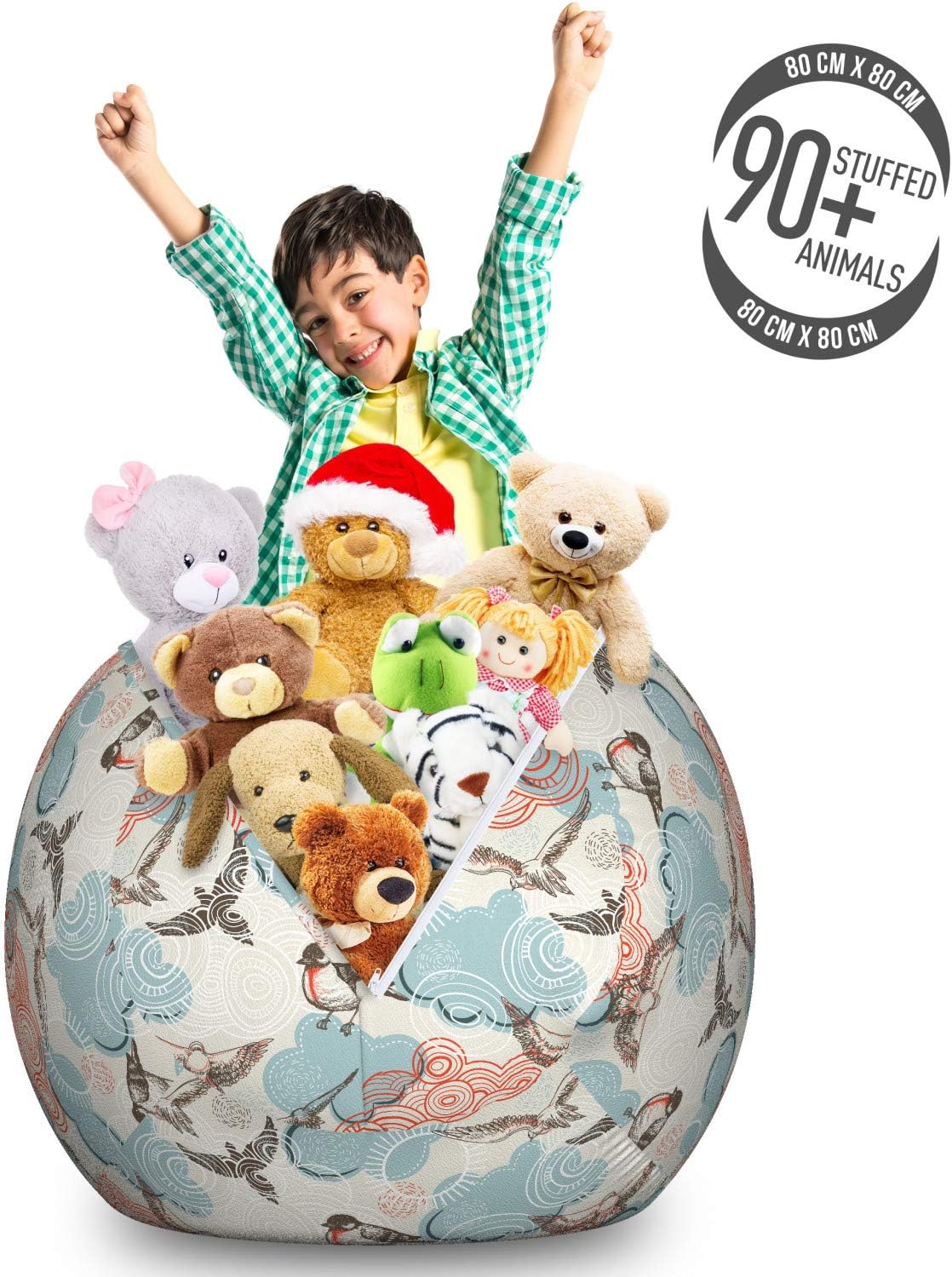 Large Size - You can stock over 90 plush toys in bean bag. Measurements: 30" W X 23" H when full.Made from - High-quality, soft %100 polyester fabric. Machine washable and durable. Stuff and sit.Features - Zipper closure. Easy to carry with large sturdy handle. Effective space saver. Practical.High capacity - Can store your stuffed toys blankets pillows nets hammocks seasonal clothes & more.Printed - With state of the art digital printing technology. Only case, insert is not included.Fill and have fun with our space saver bean bag for storage. It's a soft and cuddly way to store all your stuffed animals and soft toys; you can also stock extra pillows, blankets, sheets, nets, hammocks, towels, comforters, sleeping bags, or even seasonal clothes. It'll be your helper with its high capacity. It's also decorative; after you replace all the mess you can sit on and enjoy yourself. A perfect solution to open up some room to spare. It's suitable for anyone with thousands of different patterns. Can be a birthday or Christmas present for your loved ones. 2 different size options available: small and large. Easy to care for and easy to clean. Machine washable on cold delicate cycle, tumble dry on low. Read, snuggle, lounge, flop, and play on besides organizing stuff. Decorate your kids' room, playroom, or family room with this useful storage bean bag. The bag itself is lightweight and portable when empty. Has a large handle so you can easily carry it around, put it in your room, garden, or any place you want it to be. Due to manual measurement, please kindly allow a 1-2 cm discrepancy. The digital images we display have the most accurate color possible but due to differences in pc monitors, we can't be responsible for variations in color between the actual product and your screen. Only case, insert is not included.