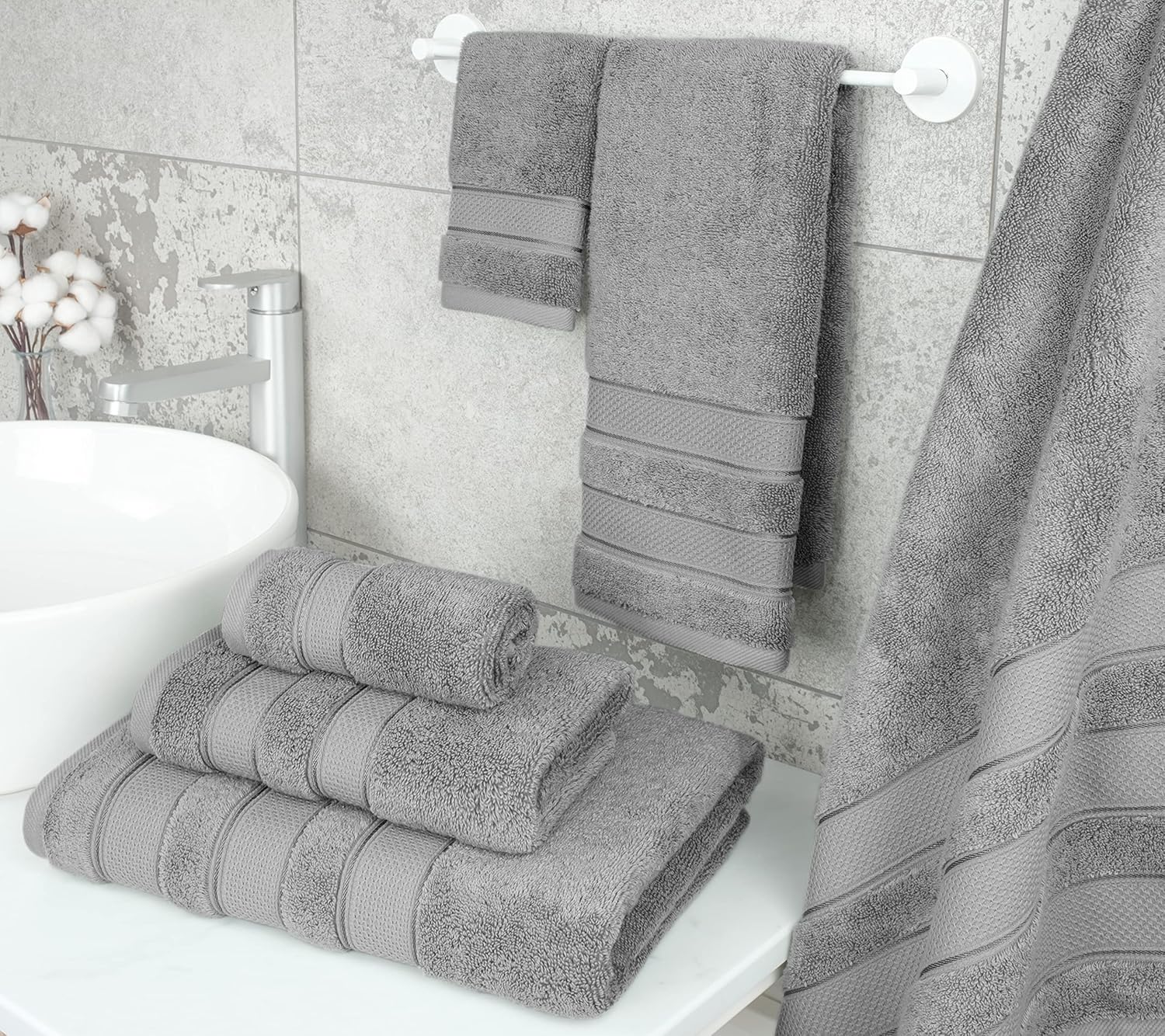 | Style | Salem 6 Piece Towel Set & 20X34" Cotton Bath Mat Bundle |
