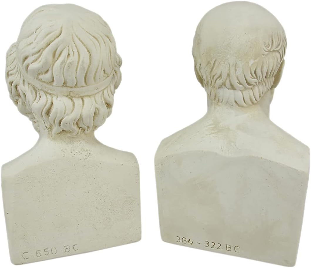 Experience the wisdom of the ages with our exquisite Greek Philosopher Bust Bookends. Crafted from durable plaster, these bookends pay homage to the profound literary contributions of Homer and Aristotle, pillars of Western civilization. Their highly detailed busts, standing tall at 8 inches and measuring 4 inches in width and depth, exude a sense of intellectual grandeur. These decorative bookends serve not just as functional holders but also as captivating decorative statues. Homer's epic poems and Aristotle's profound teachings find their rightful place on your shelves, embodying the essence of Grecian history and philosophy. The classical white plaster contrasts elegantly with the agate-like texture, adding depth to your decor. Place these bookends in your reading nook, library, or study, and let the spirit of ancient wisdom permeate your space. Whether adorning bookshelves or gracing desks and tables, they transform your room into a sanctuary of intellectual pursuit. These Grecian-inspired bookends not only hold your favorite volumes securely but also elevate your decor, blending the practical with the artistic in perfect harmony.