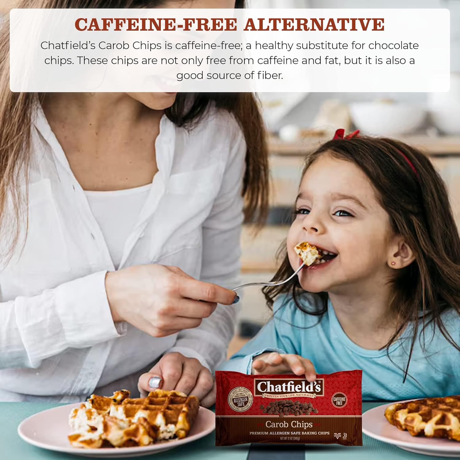 We have unlocked the secret to pure, natural and wholesome baking chips – a naturally stimulant free, non-caffeine alternative to chocolate chips. Chatfield’s Carob Chips are terrific in cookies and other baked goods, as a topping or dessert and as an ingredient in any recipe that sweetens your life, naturally. These chips contain only FIVE simple ingredients and are perfect for those with or without food allergies as they are vegan, kosher and now free from the common eight allergens. Carob chips have a delicious taste that appeals to the whole family.