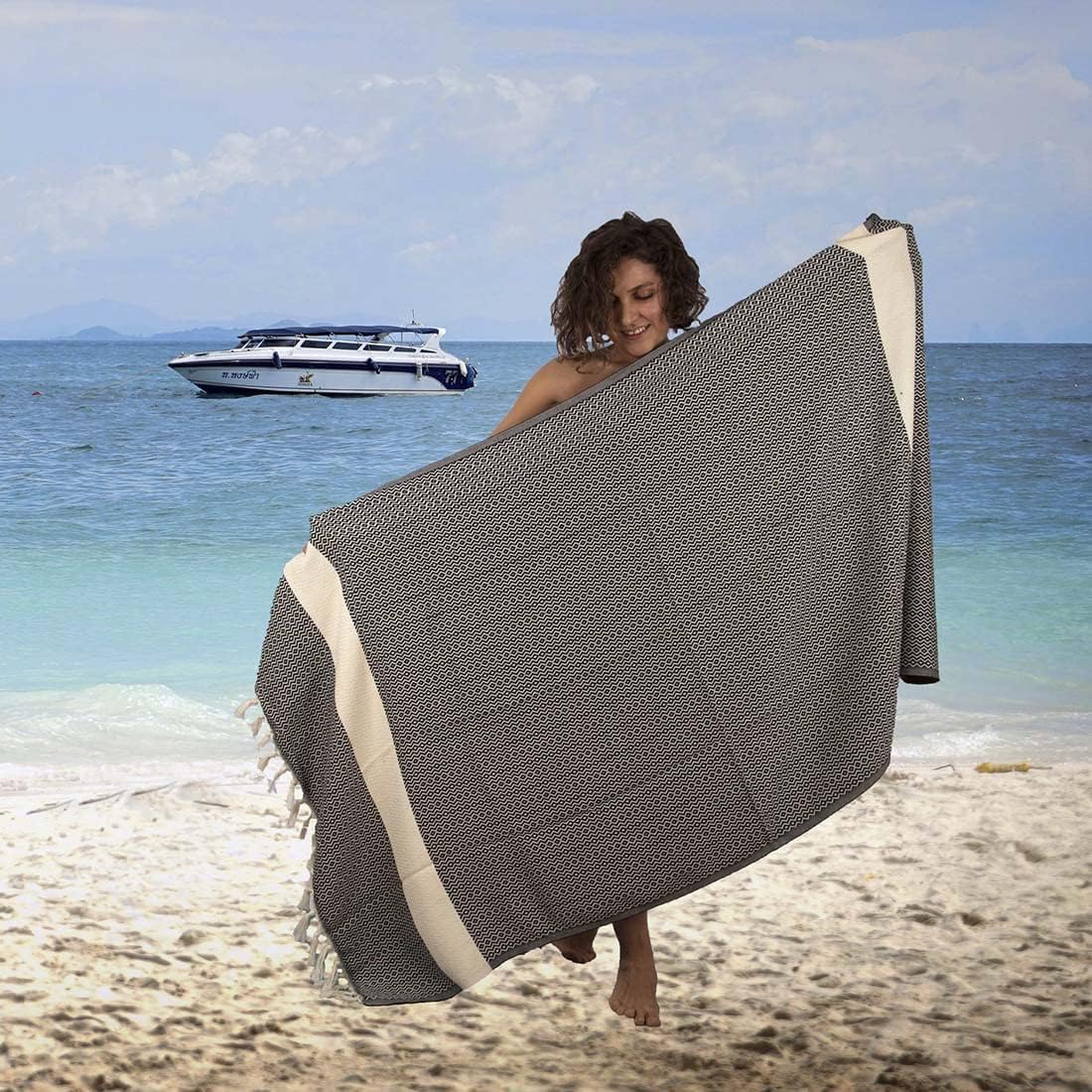 • ✅ Quick Dry: If you're looking for a towel that will dry quickly, so you can spend more time in the water, then our Turkish beach towel is perfect for you. Made with 100% cotton, this towel is lightweight and absorbent, so it'll dry in no time. Plus, it's versatile enough to use as a beach blanket, picnics, or even a sarong.