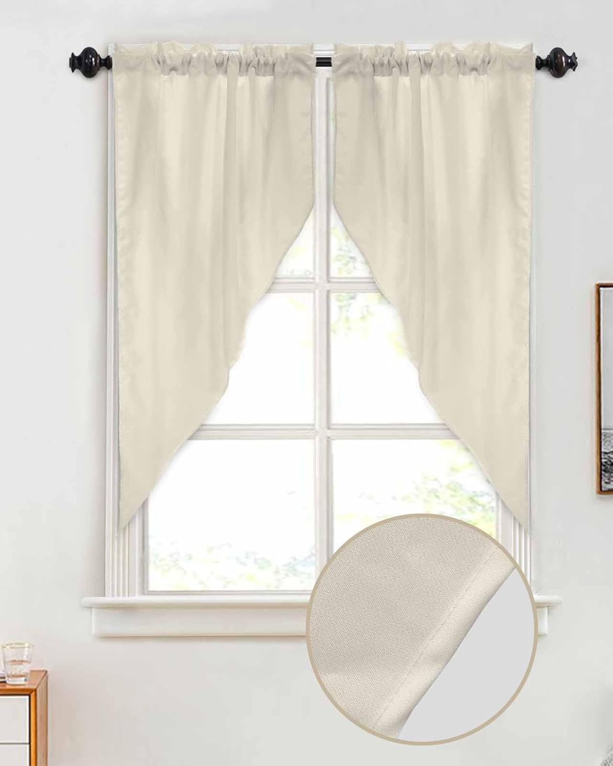 Size28 x 36 inches*236 x 36 inches*236 x 45 inches*236 x 63 inches*2MaterialMade of polyester, soft, durable, lightweight and breathable. Block out some unwanted sunlight and get privacy. 2 panels per package, 3 inch rod pocket, fits most of the curtain rodsGreat DecorCharming decorative swag kitchen curtains add amazing look to host and guest. These elegant and functional kitchen window curtains valances can be hung alone or mixed with other curtains, bring the beauty and a new look into your home decorEasy CleanMachine washable, dry at low temperature. Don’t use bleach. Don’t use sharp things scratching curtains