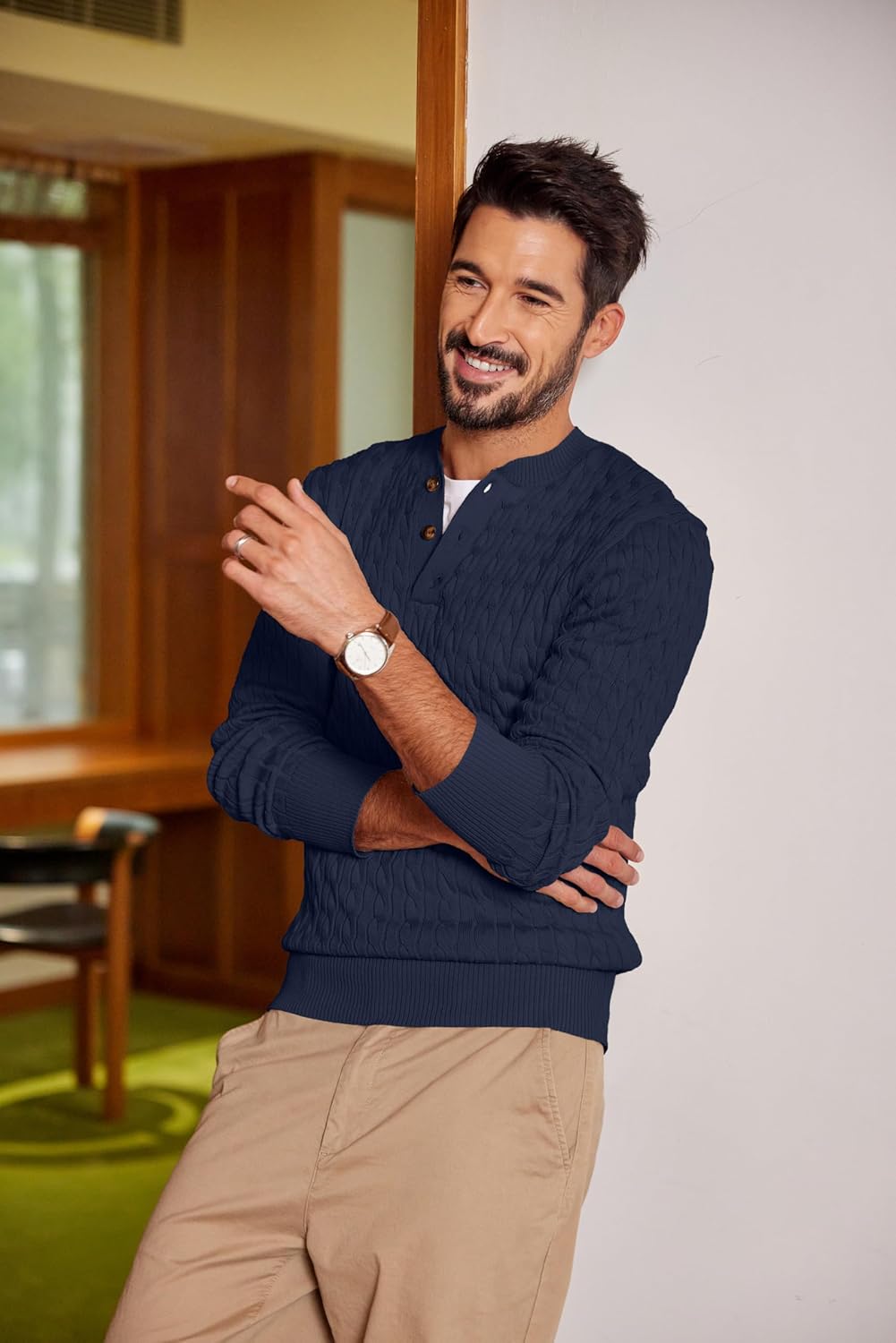 | Style Name | A Casual Slim-fit Cable-knit Henley Sweater |