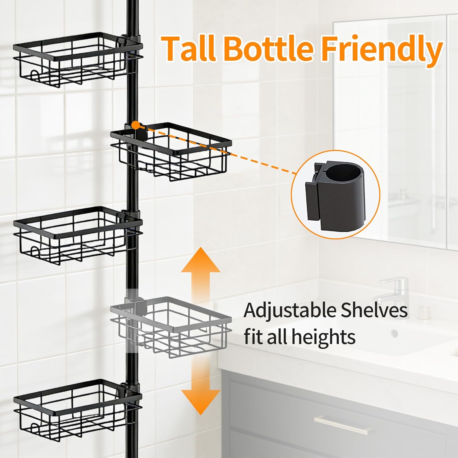 | Included Components | 8 assembly poles, 6 shower caddies, 2 soap holders, 2 toothbrush holders, 1 towel bar, and 10 assembly accessories. |