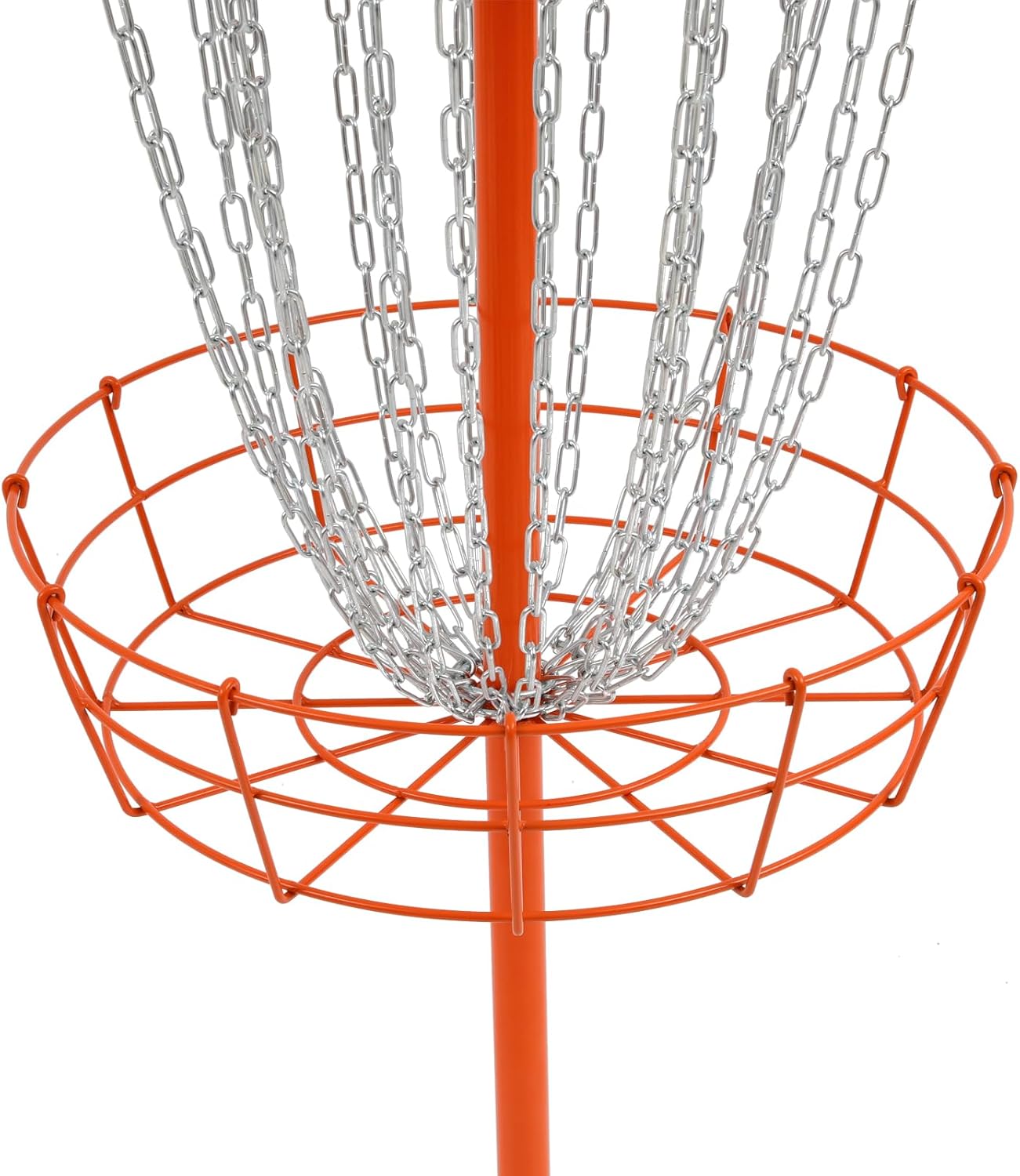 DescriptionElevate your disc golf game with this essential training basket, thoughtfully designed for passionate golf disc enthusiasts. Whether in your backyard, local park, camping site, tailgate party, or temporary course, it's the ideal companion for honing your throwing skills and enjoying the sport on your terms. Combining fitness with fun, it creates a lively yet relaxed environment where players of various ages can enjoy the joy and excitement of disc golf together.SpecificationsMaterial: IronProcess: Spraying, Baking PaintStyle: ModernColor: OrangeShape: RoundSport: Disc GolfMount Type: Freestanding, Floor MountAssembly Required: YesNumber of Iron Chains: 24Gross Weight: 13kg/28.66 lbs Net Weight: 12.35kg/27.23 lbs Top Cap Size(D*H): 54.6*5cm/21.5*1.97inBasket Diameter: 64.7cm/25.5inTube Diameter: 38mm/1.5inBase Diameter: 54.6cm/21.5inProduct Height: 132cm/52inPackage Size: 65*65*18cm/25.6* 25.6*7.09inPackage Included1* Disc Golf Basket4* Ground Stakes1* English Installation DiagramAll Accessories for AssemblyNotes1. Please carefully check if the size is suitable before placing an order.2. Please note that this disk golf discs does not include a flying disc.3. Please allow the slight color difference caused by the shooting light and 1-3cm error due to manual measurement, and make sure you do not mind before you order.