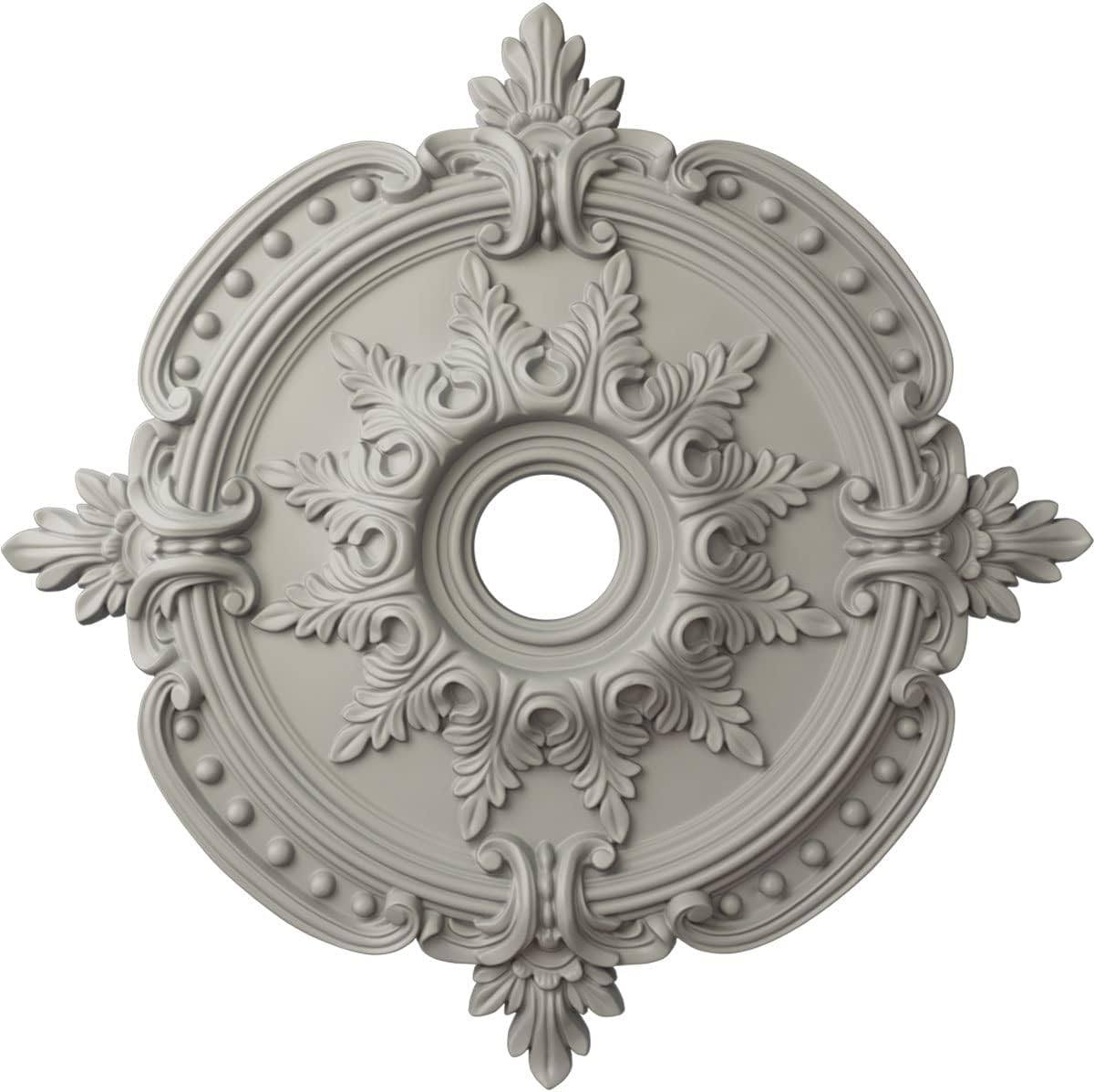 Our ceiling medallion collections are modeled after original historical patterns and designs. Our artisans then hand carve an original piece. Being hand carved each piece is richly detailed with deep relief, sharp lines, and a truly unique touch. That master piece is then used to create a mold master. Once the mold master is created we use our high density urethane foam to form each medallion. The finished look is a beautifully detailed, light weight, solid construction, focal piece. The resemblance to original plaster medallions is achieved only by using our high density urethane and not vacuum formed, "plastic" type medallions. Medallions can be cut using standard woodworking tools to add a hole for electrical or a ceiling fan canopy. Medallions are light weight for easy installation. They are fully primed and ready for your paint. If you have any questions feel free to ask. These are in stock and available for immediate shipment.