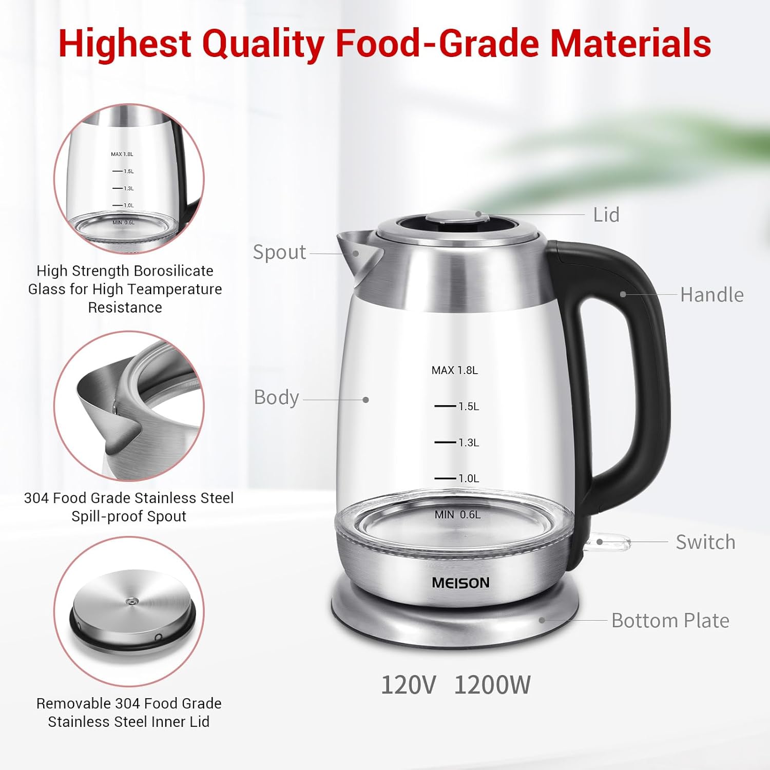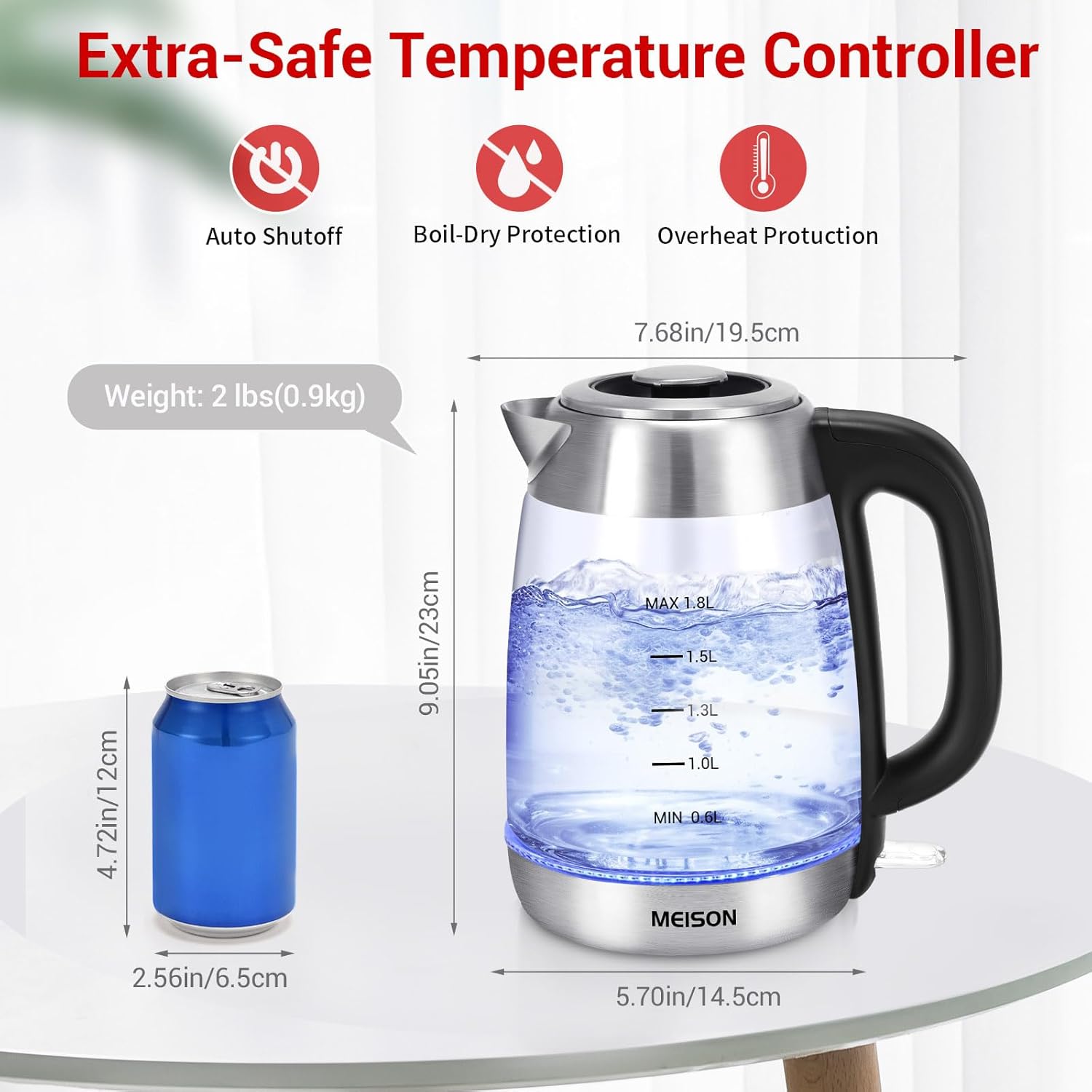 Electric Tea Kettles Glass for Boiling Water, Speed-Boil Electric Kettle,Hot Water Boiler Heater, Borosilicate Glass Teapot, Auto Shut-Off & Boil-Dry Protection, 1.8 Liter, 2 Year Warranty (glass)