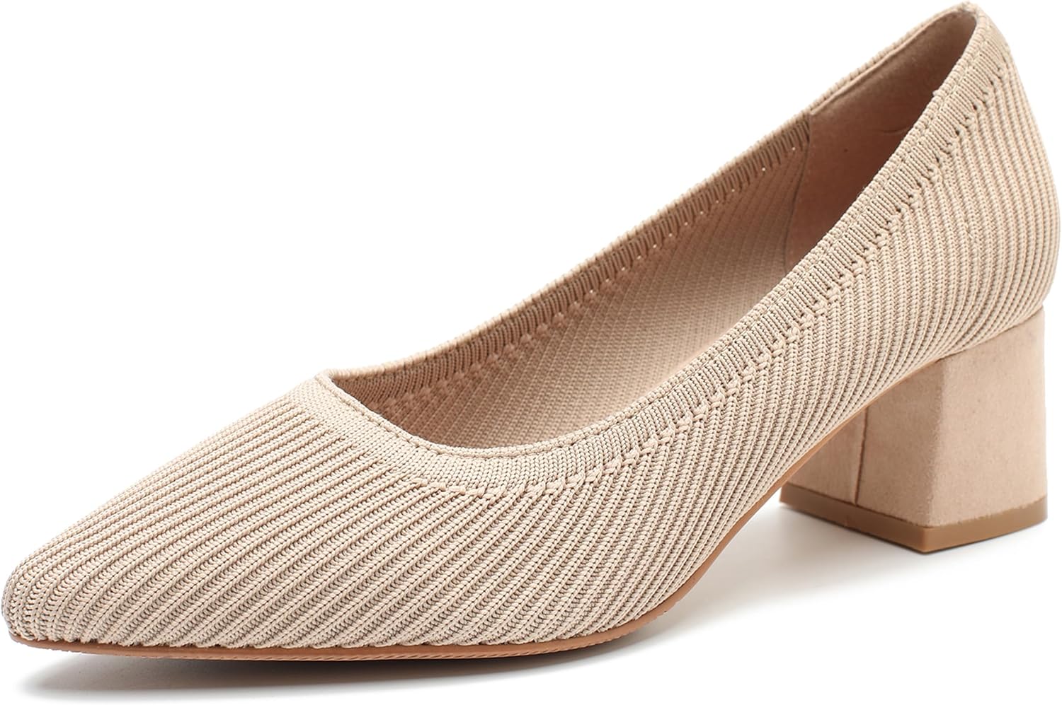 Women's Knit Pumps Closed Toe Low Block Chunky Heels Slip On Pointed Toe Short Small Thick Heels Wedding Bridal Homecoming Work Prom Shoes Comfortable Cute Dressy Formal Office Business Party Classic Pumps ShoesKnitted Fabric material upperComfortable pointed toe block chunky heel measures approx 5cm/1.96 inchesPERFECT FOR EVERY OUTFITS: Best for your daily life such as shopping, office, walking, party, wedding and any other special occasions.Classic Pointed Toe Heels: With a timeless pointed toe design, suitable for four season, perfect with dresses, skirts, shorts, jeans or other daily outfits.Comfortable Block Heels: Suitable for all kinds of occasions, commuting, shopping, dating, parties, show your confidence, unique temperament. Whether it's Valentine's Day, Christmas, New Year, Mother's Day, wedding anniversary or birthday, they are your preferred gift.