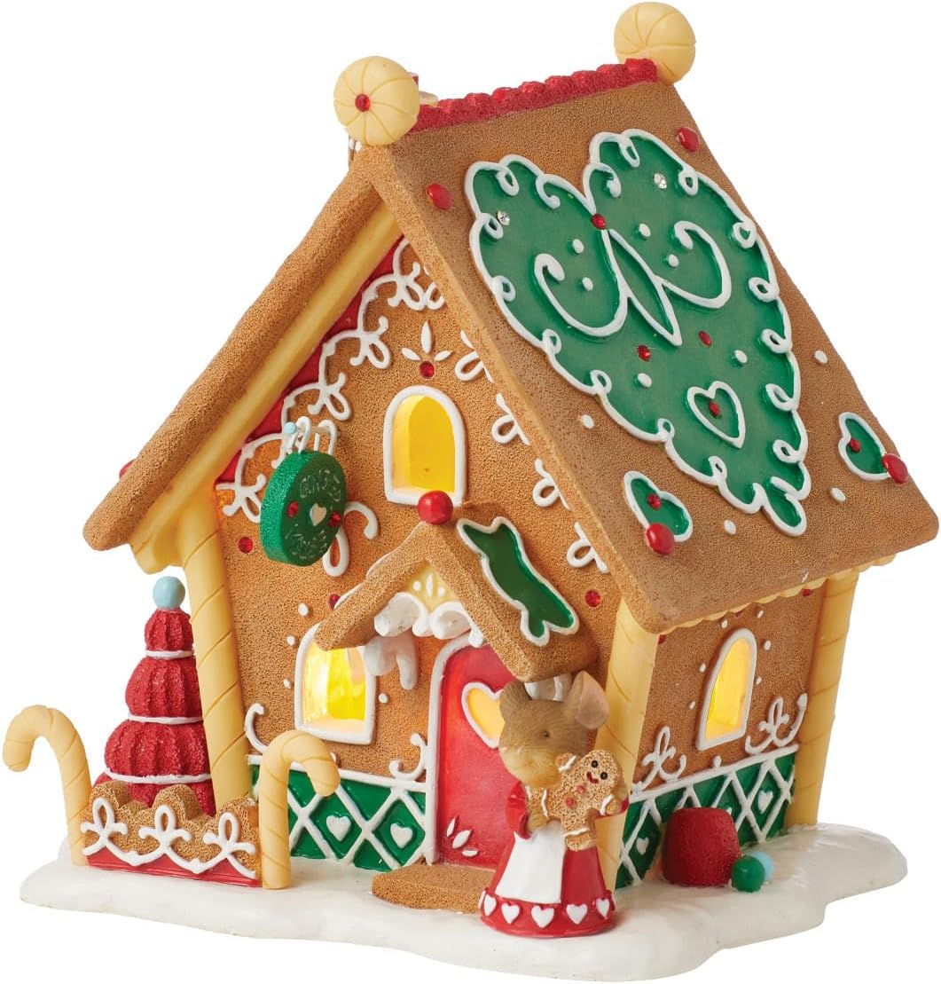 The Tails With Heart mice always bring a touch of sweetness wherever they go! These adorable furry friends will undoubtedly turn any frown upside down. Celebrate the holidays with this sugary sweet scene from Tails with Heart! A delightful mouse invites us inside her lavishly decorated gingerbread house for cookies and candy. The light up house features intricate icing details and gumdrops. About Us: Enesco is committed to BRING JOY EVERY DAY. The premier global destination for high-quality giftware, and home decor, our prestigious family of brands includes: Department 56 Village, Izzy and Oliver, Foundations, Jim Shore Heartwood Creek, Disney Traditions by Jim Shore, Disney Showcase Collection, Disney BRITTO, Designs by Lolita, Our Name Is Mud, and many more.