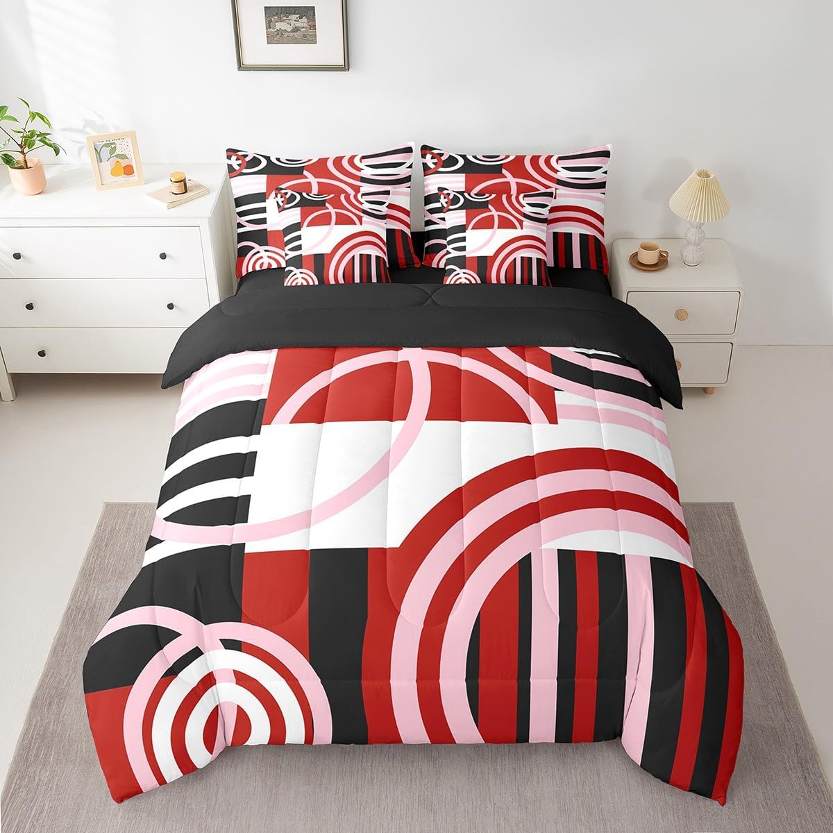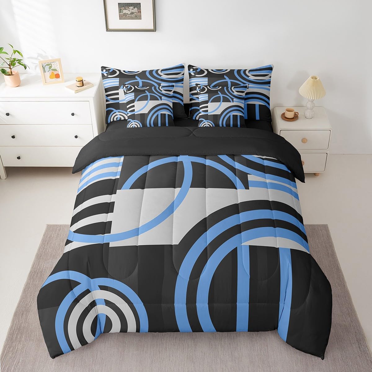 Why choose us Everyone has their own preferences; we develop different styles and different designs to suit the hobbies and aesthetics of different people; we look forward to bringing more joy and fun into your life; special design for special you; it's not just a simple home product, it's a way of life Brighten up your bedroom with this bed linen set; this bright and colourful bedding set features vibrant colours and special print pattern; turn the reversible duvet set over for a new look against a modern geometric background Convenient to use due to polyester which is super soft and comfortable; this all year round bedding is designed to be lightweight and breathable for a good night's sleep; a practical product for homes, dormitories, hotels, guest rooms Twin bedding set includes 1 twin comforter: 68"x90", 1 fitted sheet: 39"x75"x16", 1 flat sheet: 66"x96", 2 Pillowcases: 20"x30", 2 square pillow covers: 18"x18", perfect for a twin size bed. Full bedding set includes 1 full comforter: 79"x90", 1 fitted sheet: 54"x75"x16", 1 flat sheet: 81"x96", 2 Pillowcases: 20"x30", 2 square pillow covers: 18"x18", perfect for a full size bed. Queen bedding set includes 1 queen comforter: 90"x90", 1 fitted sheet: 60"x80"x16", 1 flat sheet: 90"x102", 2 Pillowcases: 20"x30", 2 square pillow covers: 18"x18", perfect for a queen size bed. King bedding set includes 1 king comforter: 104"x90", 1 fitted sheet: 78"x80"x16", 1 flat sheet: 90"x106", 2 Pillowcases: 20"x36", 2 square pillow covers: 18"x18", perfect for a king size bed. In addition to this comforter set with sheets, there are curtains, area rugs, shower curtains, blankets and other furniture with the same design waiting for you to explore. Whether it is for birthday of your family or friends, relatives, or just for yourself, the item should be interesting and authentic.