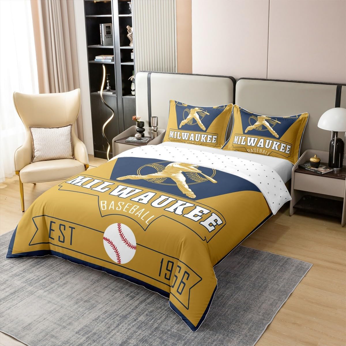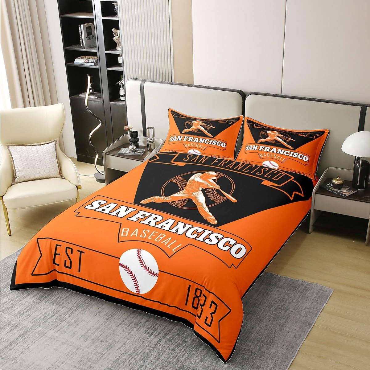 The good bedding shouldn't just give you a nice night sleep, it should also match your home decor seamlessly;What makes our bedding so uniqueUnique designs, we offer a wide selection of digital printed designs, like cabin rustic, farmhouse camping,video game, ocean beach, modern geometric, garden floral for kids, boys, girls; vivid colors and unique designs match well with your all other decor accessories; 100 Percent cotton fabric is breathable, soft with a high tensile strength which making it feel like you're being gently cuddled when you sleep inside them;Easy to care: Machine wash in cold and dries quick on tumble dry low; Range of sizes:Twin bedding 1 duvet cover: 68"x90"and 1 pillow sham:20"x30"Full bedding 1 duvet cover :79"x90"and 2 pillow shams 20"x30" Queen bedding 1 duvet cover :90"x90" and 2 Pillow Shams 20"x30" King bedding 1 duvet cover :104"x90" and 2 pillow shams 20"x36";Comforter is not included
