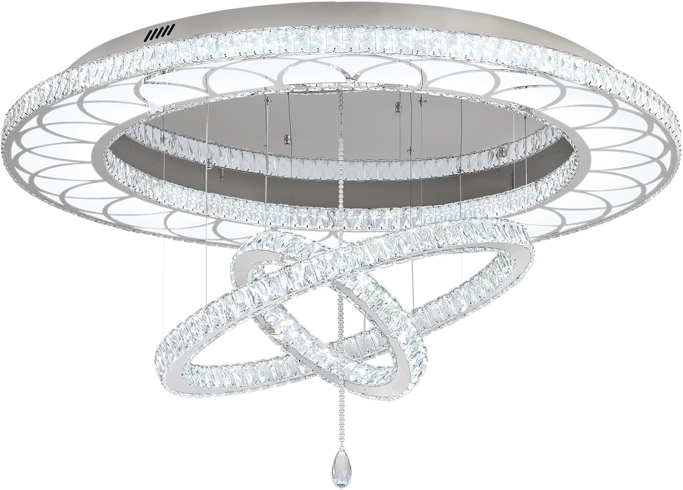 Flashing God Extra Large Chandelier Dia 55" Chrome Chandeliers Flush Mount Chandelier for Living Room Bedroom Dining Room Hallway Dimmable 3 Rings Ceiling Chandeliers