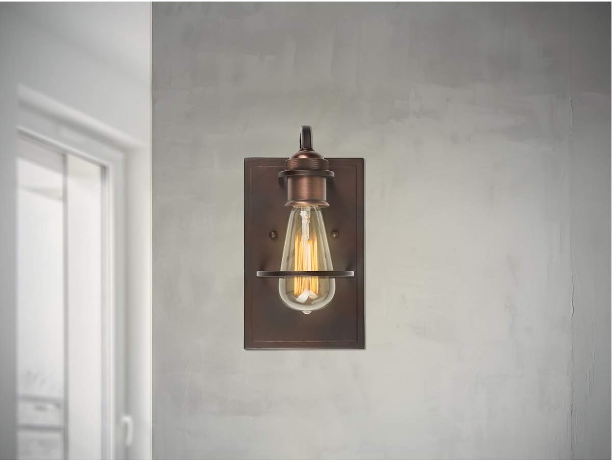 Collection: Hoops, Material: Steel, Finish Color: Antique Bronze, Width: 5.5", Height: 10", Depth: 5", Backplate Width: 5.5", Backplate Length: 8.75", Lamping Type: Incandescent, Number Of Bulbs: 1, Wattage: 100 Watts, Moisture Rating: Dry Rated, Desc: Mounting Direction: Up or Down / Back Plate Height: 8.75 / Back Plate Width: 5.50. ,