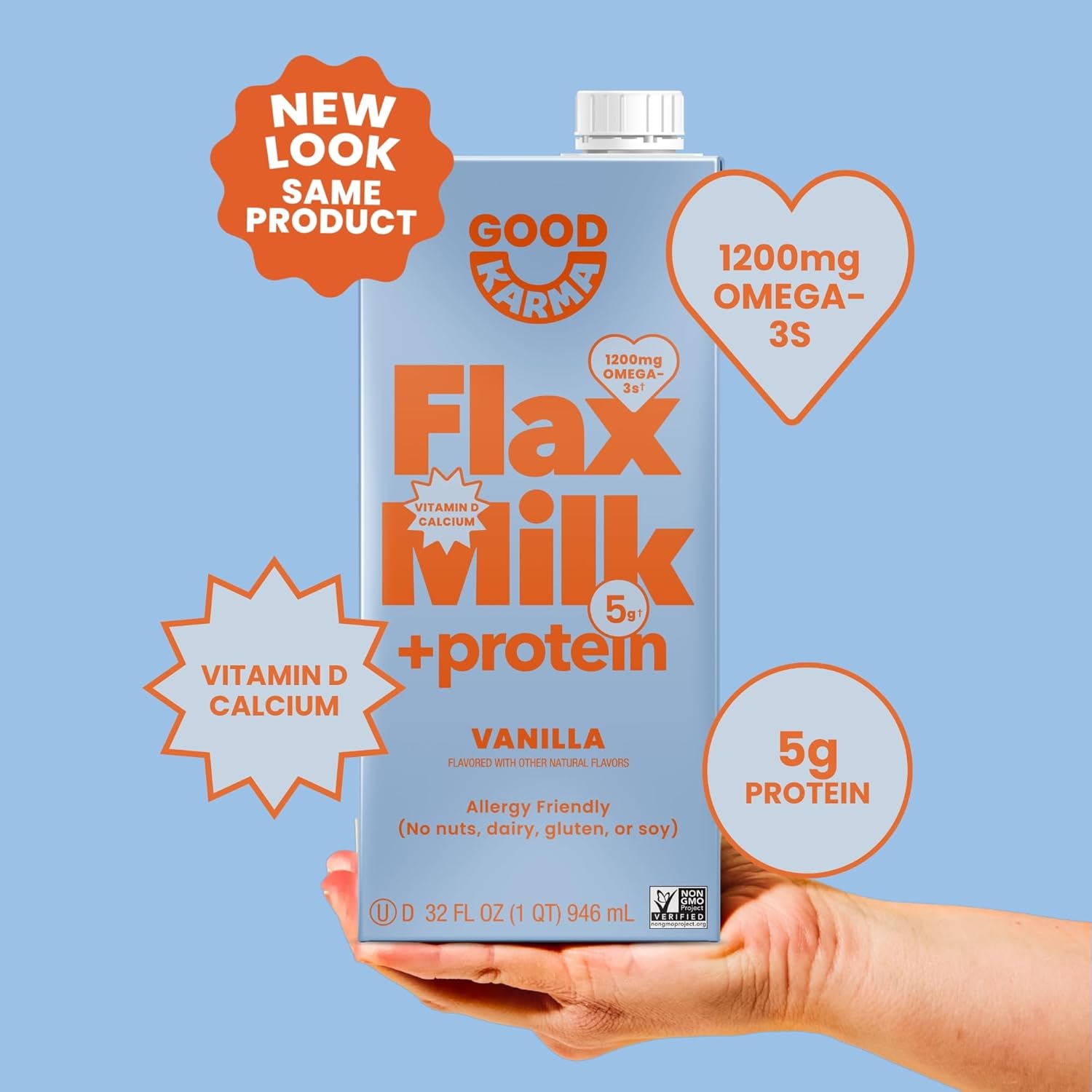 Good Karma Flaxmilk Non Dairy Vanilla Lightly Sweetened Flavor, Lactose Free, Vegan, Non GMO, Gluten Free, Dairy Free, 32 Fluid Ounce (Pack of 6)