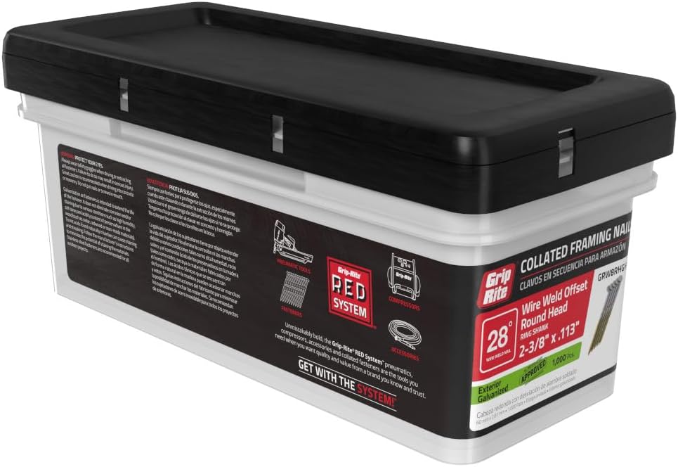 Grip-Rite 8d Cooler - 2-3/8-Inch x .113 HOT-DIPPED GALVANIZED, RING SHANK, 28? Clipped Head, Wire-Weld Collated, Stick Framing Nails - 500 per tub