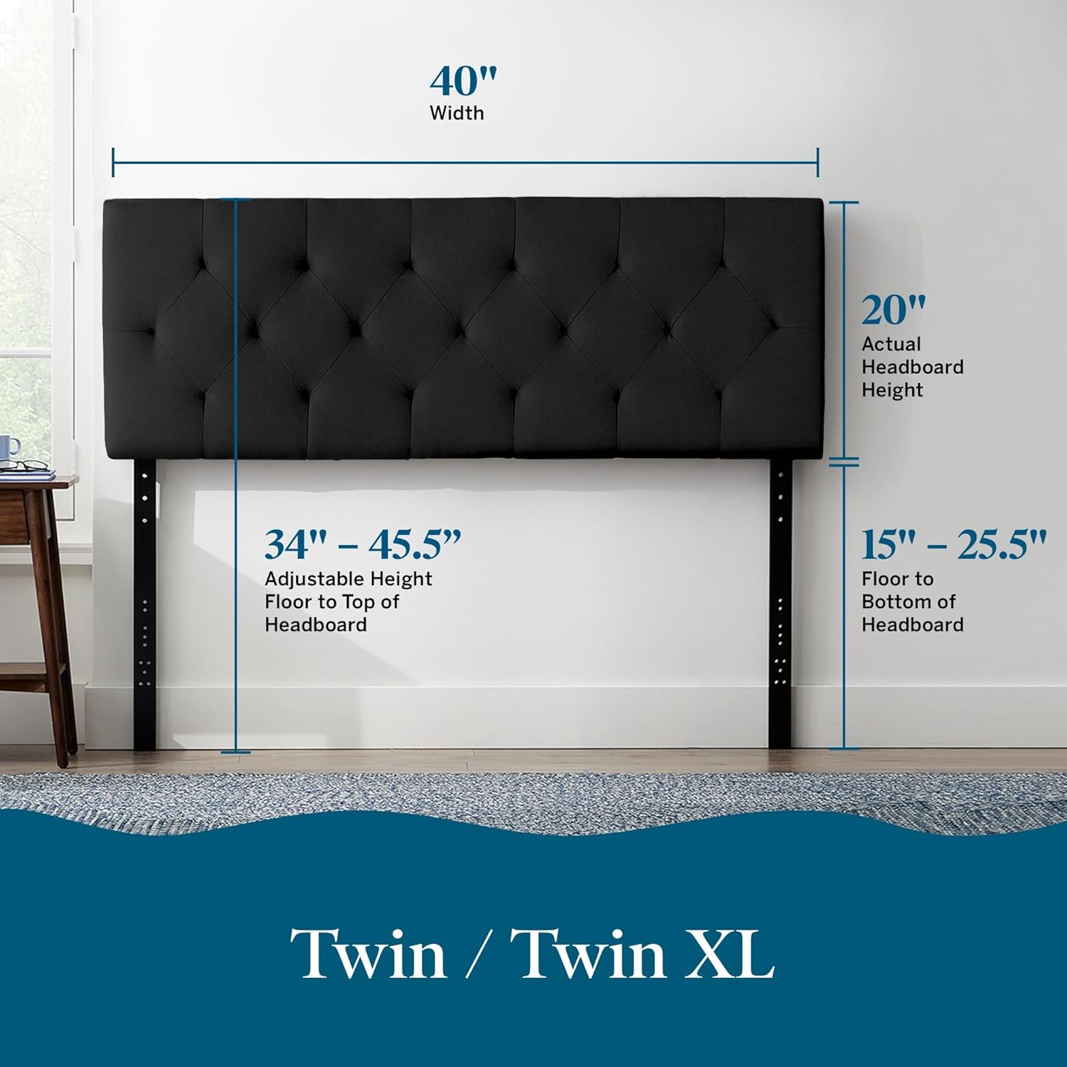 At Lucid, we make beds for the whole family— because when you tailor your own space, your room becomes a part of your individual identity. Styling your bed doesn’t have to be hard. The Lucid Mid-Rise Diamond Tufted Upholstered Headboard is the perfect bedroom focal piece. This is especially true if you are looking for something sophisticated and elegant for your bed frame Twin size. The midrise design adds a focal point, while the diamond tufting provides elegant tastefulness. The black fabric headboard is upholstered with polyester, bringing texture to any bedroom. The compartment in the back of the headboard includes predrilled legs, modi plates, and hardware, allowing you to attach your headboard to your bed frame or mount to the wall with ease. Bring a touch of subtle class to your bedroom. Style awaits.
