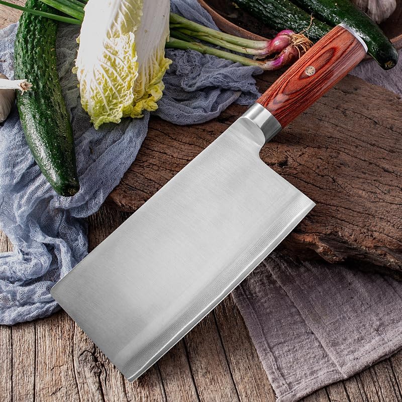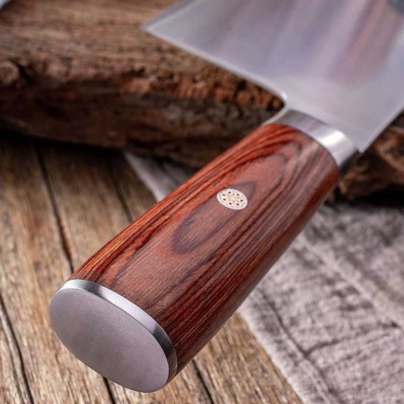 Product detailsName: Professional Slicing KnifeBlade Material: Damascus steelHandle Material:WoodKnife Length: 310mmBlade Size: 188x93 mmBlade Thickness: About 2.0mmApplication: Eviscerate Slice meat / fish / vegetable / fruitWeight: 0.43KGPacking: In Box