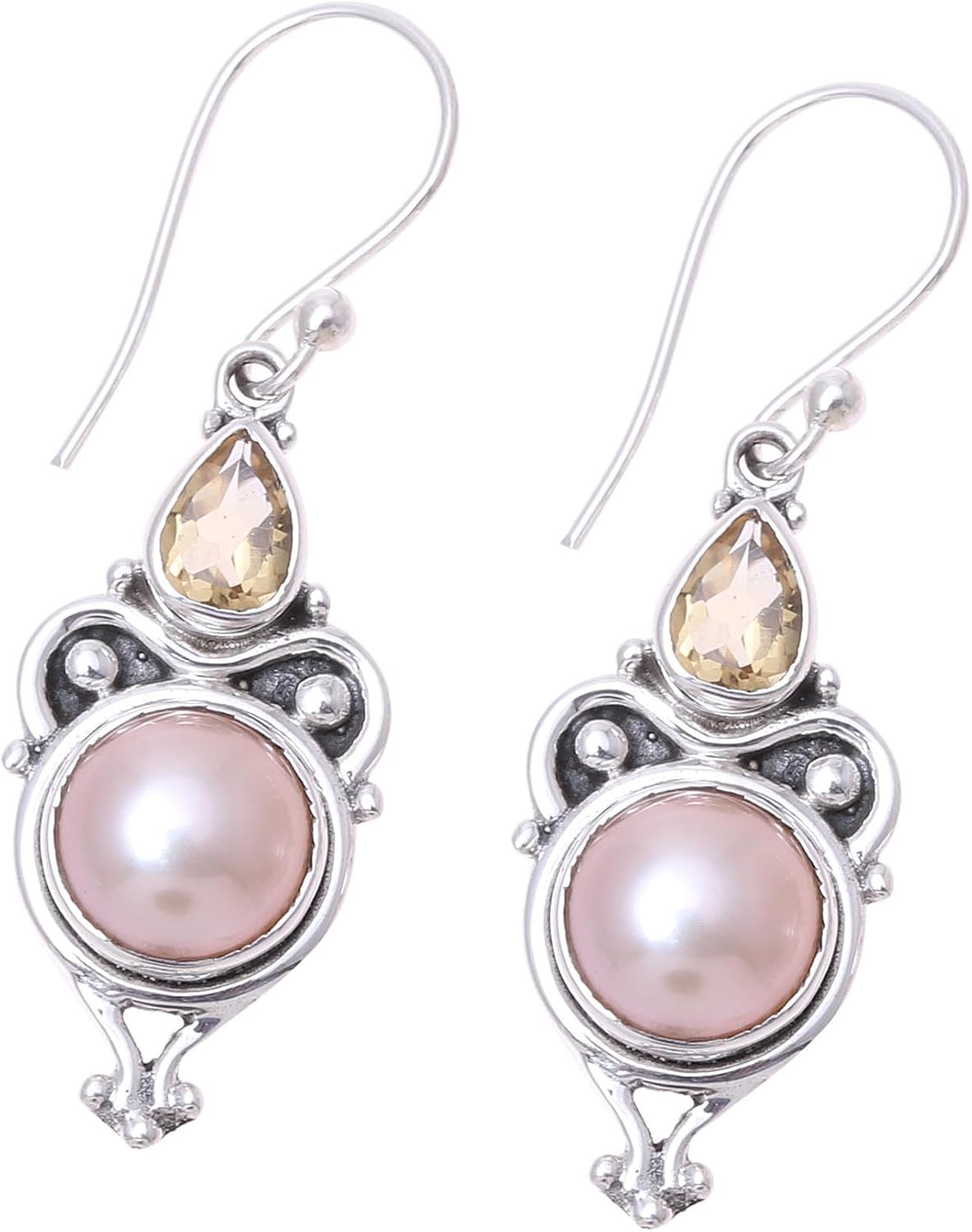Novica works together with talented artists, artisans, and designers around the world to produce stunning, keepsake handmade treasures. Our mantra is to Spread Happiness, so rest assured - we’ll do everything we possibly can to ensure you’re a happy customer!About this item: Crafted by local Indian artisans, these dangle earrings will make an elegant addition to your wardrobe. Two round, pink cultured pearls are framed by sterling silver designs with a combination of finishes, complete with sparkling pears of citrine just above.About our Artist: Neeru Goel inherited her passion for jewelry from her grandmother. 'My grandmother would look into each and every detail, from how jewelry is made to the materials. It feels great to see my designs being admired by other people.'...