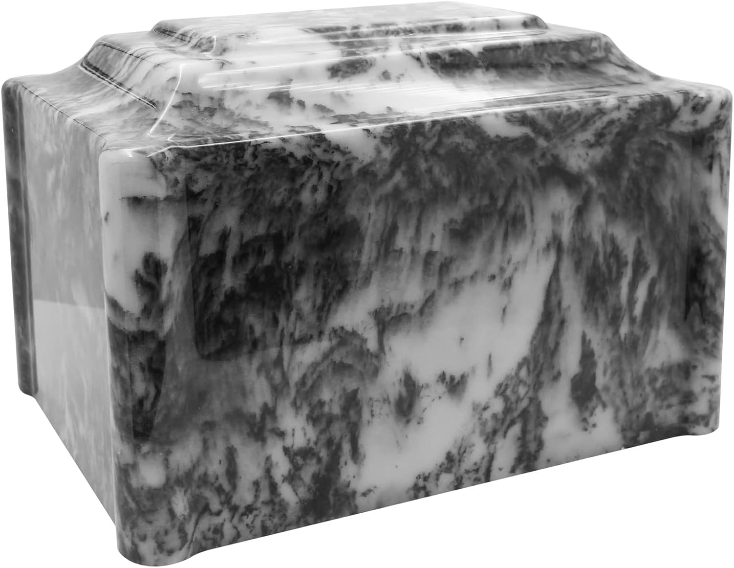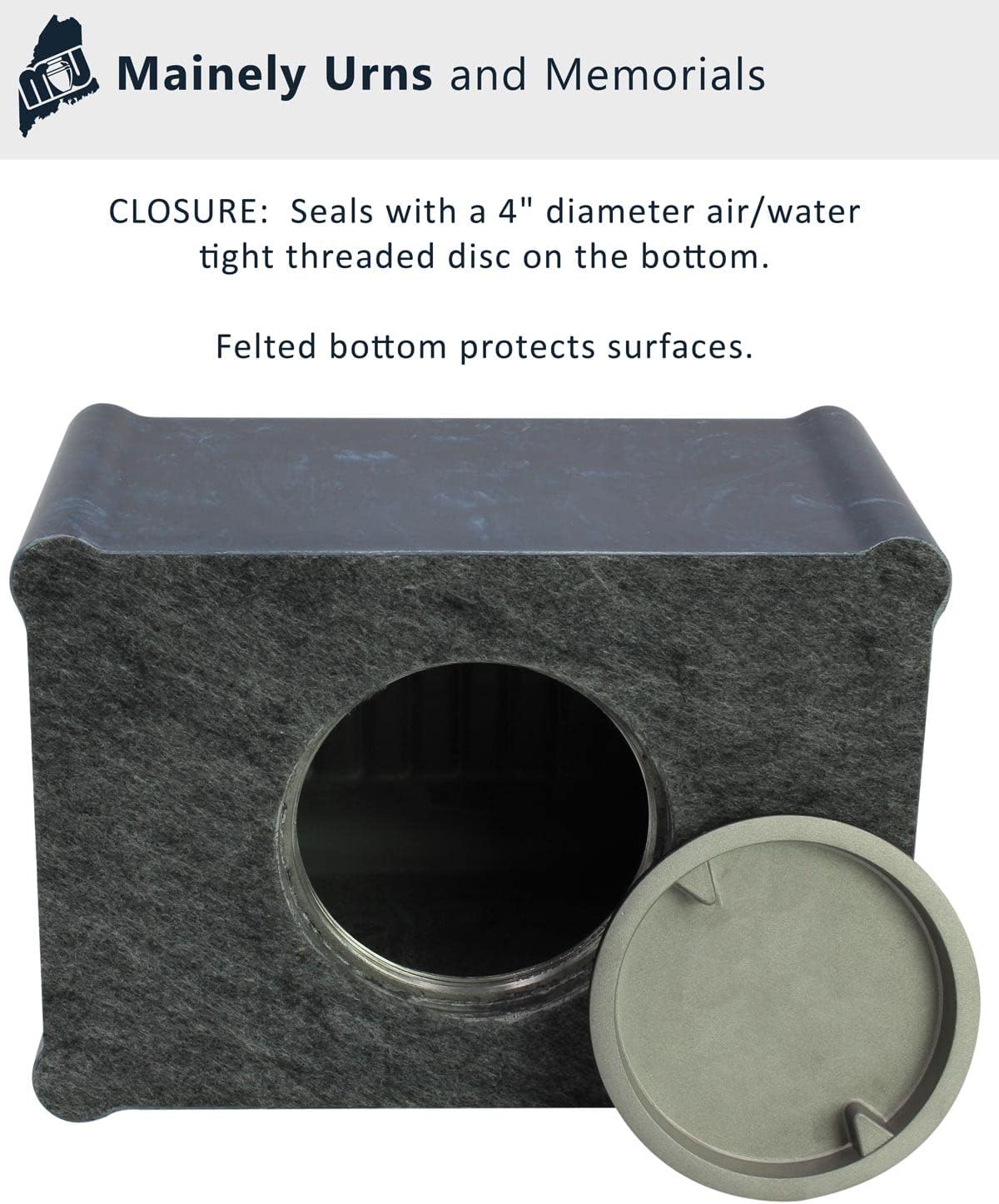 The Mainely Urns Ocean Breeze Cultured Marble Acadia Cremation Urn gives you a lasting memorial to your loved one. This funeral urn is an American-made cultured marble cremation urn crafted in the heart of New England using state-of-the-art composite technology and century old molding techniques. This is our most recommended cremation urn line because of the quality, strength and craftsmanship. Cultured marble urns are luxurious in appearance with a high-gloss finish and very durable. They are high strength and more resistant to denting and chipping than natural marble urns. Cultured marble is a precise blend of natural marble limestone and polyester resins. A cremation urn and reinforced burial vault in one. This cultured marble funeral urn is engineered to be as strong as a vault, making it ideal for burial or permanent display. Acadia 210 Dimensions: 9.75"L x 6.75"W x 6.5"H Urn Weight: 12.2 lbs Capacity for ashes: 210 Cubic Inches for a person weighing up to 200 lbs before cremation. This cremation urn is made of x-rayable materials that will pass through airport x-ray machines. It is permissible as a carry-on item and can be checked as baggage for most airlines. Policies differ from airline to airline so you still need to consult your airline about their specific policies regarding traveling with ashes.