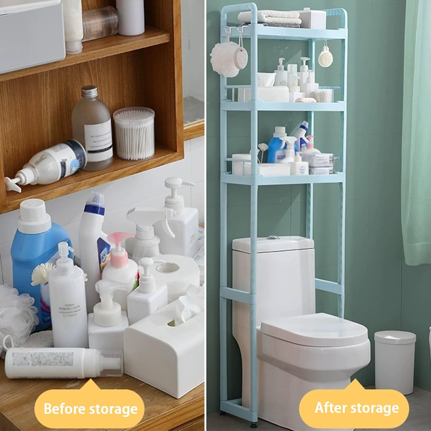 • Spacious Storage Space: Toilet storage shelf the bathroom space saver offers open storage space for various objects, like potted plants, toiletries, cosmetics and aromatherapy. guardrails to prevent items from falling