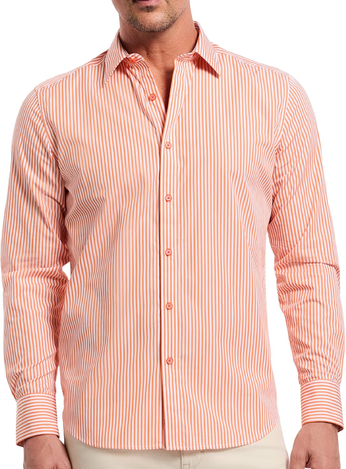 The Greenwich Long-Sleeve Button-Down Shirt will make a great addition to any work or formal wardrobe. This striped button-down is made from a blend of cotton and spandex with enough stretch for comfort. It features a point collar, a full button-front placket, a contrast print with piping in the inside yoke, button cuffs, and a shirttail hem, making it dressy enough for any occasion. Pair it with slacks for a business-casual look, or wear it untucked over dark-wash denim for a fun night out. This easy-to-wear men’s formal shirt or casual shirt will become a staple for your professional and everyday outfits.This long-sleeved shirt is available in various sizes so you can always make a stylish statement. It’s made from high-quality fabric that is machine washable in cold water.Robert Graham has been an innovator in clothing design since 2001. We strive to create original and wearable art that helps you create a unique fashion and style. Each item is carefully crafted with high-quality and lush textiles to create a one-of-a-kind wardrobe staple that you will want to wear again and again. With our rich fabrics and unparalleled craftsmanship, we embody luxury at its finest.