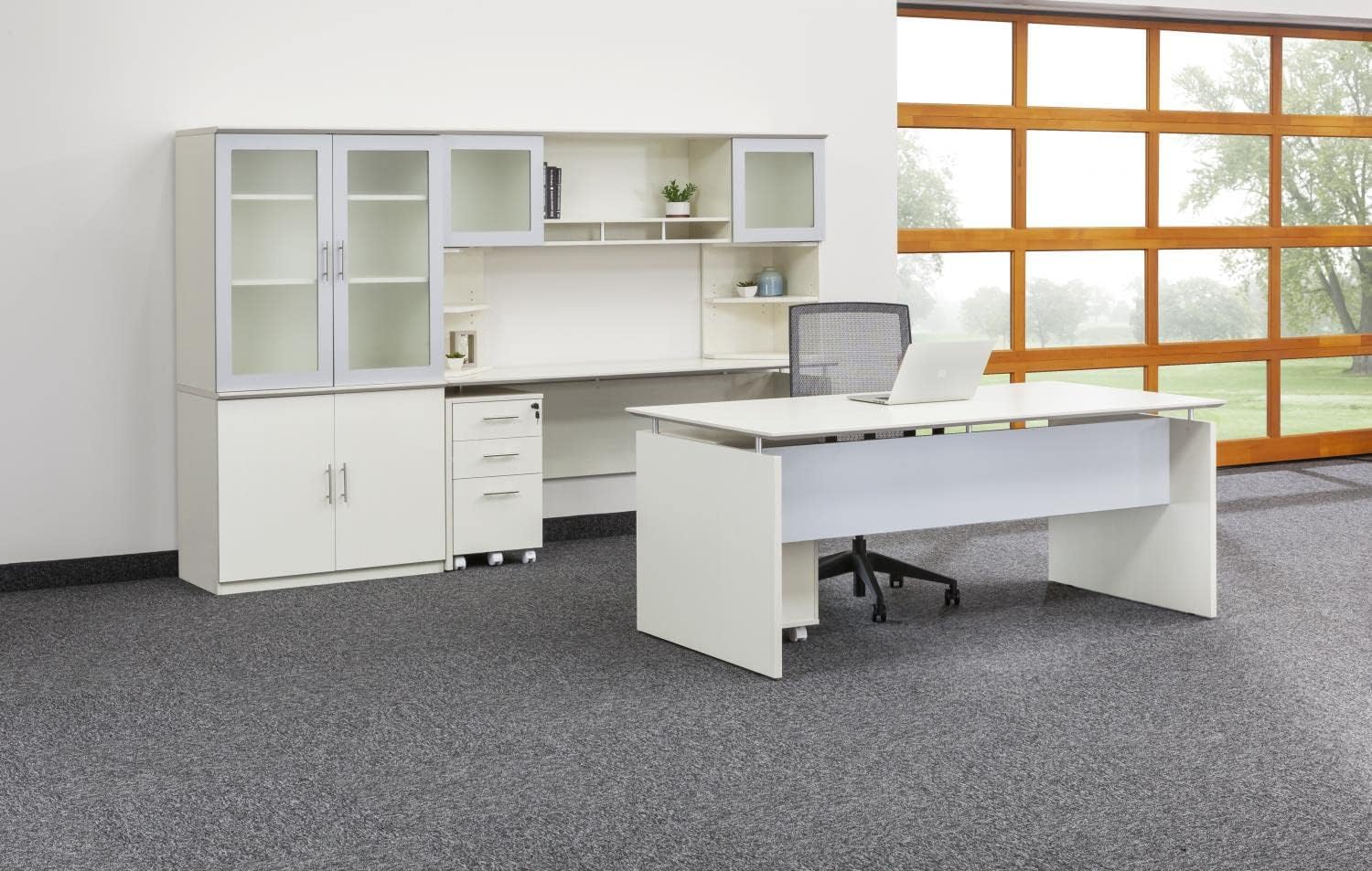 Stay fluid in your workspace with the secure, mobile filing of the Medina 3-Drawer Storage Pedestal. Four wheels allow you to roll the Pedestal around for easier access while working, then quickly stow it again when the job is complete. Two of the wheels lock in place to keep the Pedestal in place while you feverishly flip through files. Lockable drawers, including one file-size drawer and two smaller box-size drawers, allow you to safely house your valuable items, sensitive documents, and letter- and legal-size files. All three drawers lock and unlock at once for single-key, single-turn convenience. The Pedestal fits under your Medina Desk or Credenza Desk to help make the most of your valuable office space. Medina's durable, scratch- and stain-resistant laminate finish is in it for the long haul, helping to reduce the chance that a bump from an office chair or a splash from a cup of coffee leaves a lasting impression on the surface. Pick the color of your new Medina 3-Drawer Mobile Storage Pedestal from one of five sophisticated options, including Textured Sea Salt, Textured Brown Sugar, Mocha, Mahogany or Gray Steel. This Mobile Storage Pedestal coordinates with the entire Medina Series of Desking, Conference and Reception Furniture, so you can create a complete, cohesive and professional office environment.