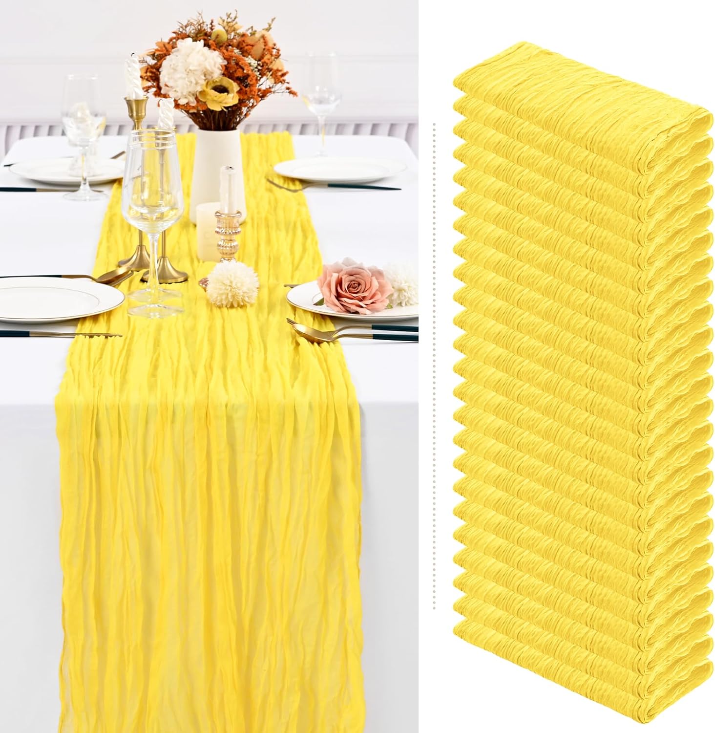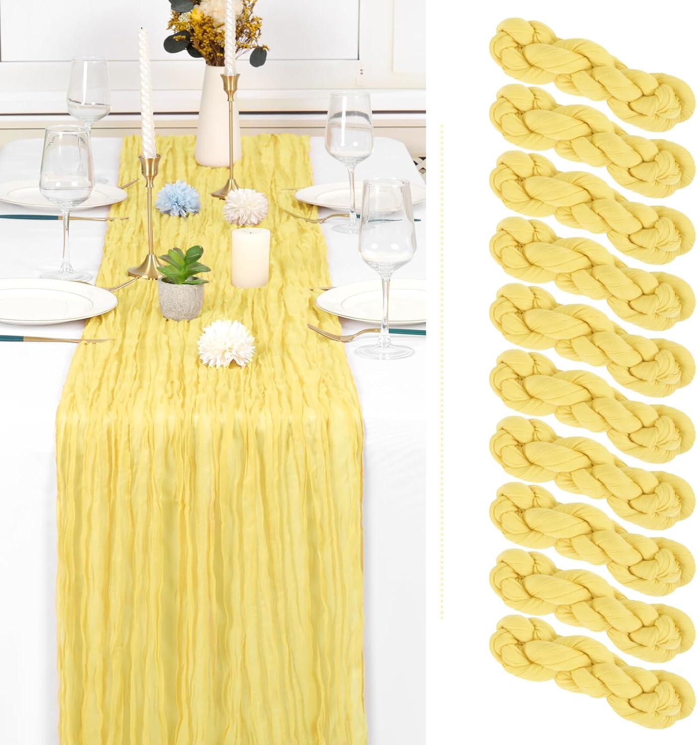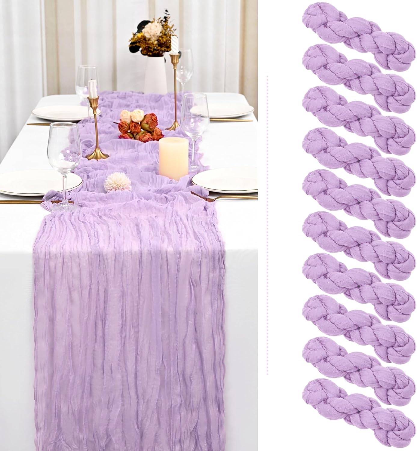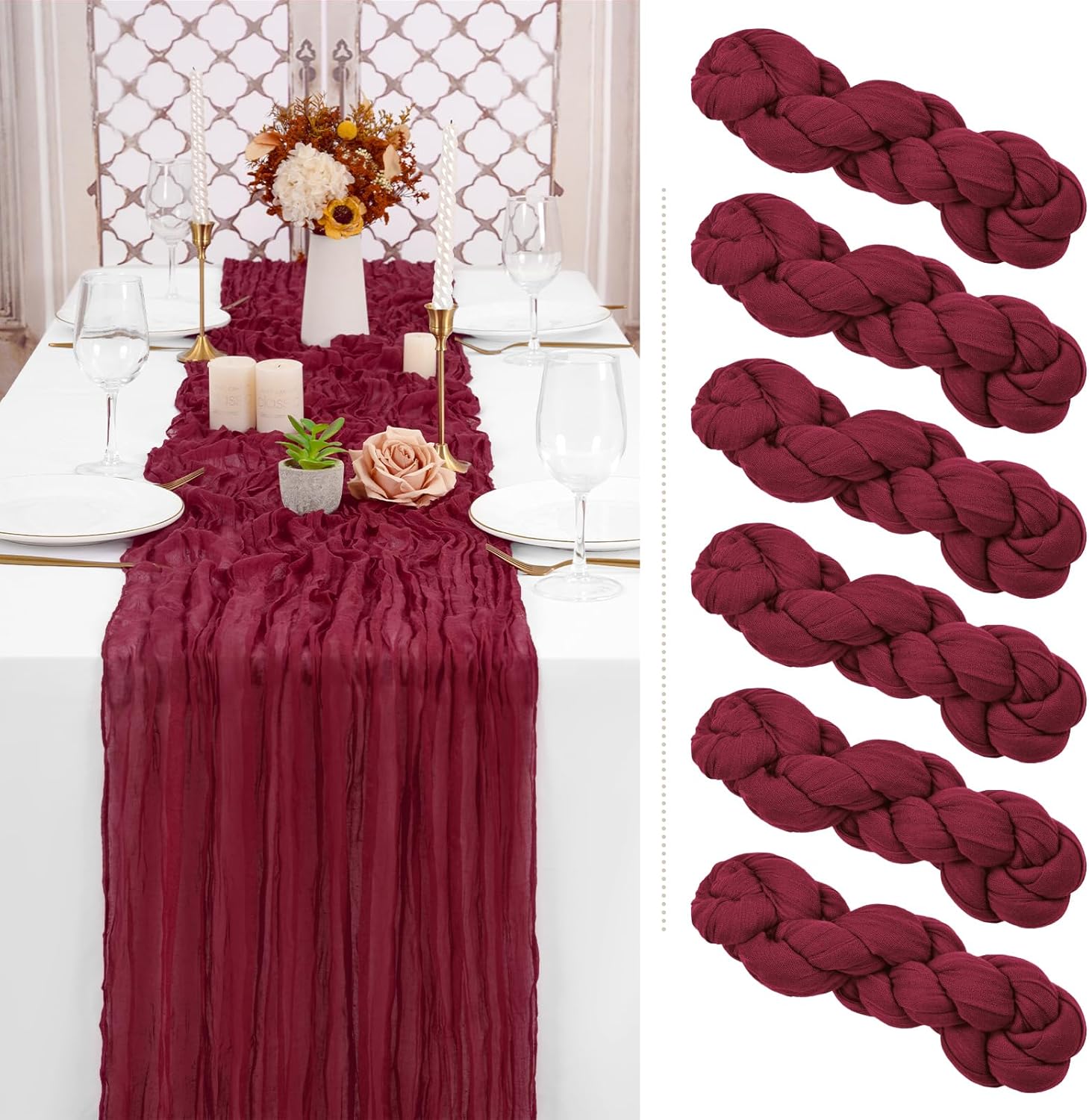 18 Pack Cheesecloth Table Runner Linen Table Runner Rustic Table RunnerColors: Terracotta, Beige, Sage Green, Dusty Blue, Dusty Pink...Material: 100% natural cheesecloth fabric.Size: 35 inches wide and 120 inches longFeatures:Soft to the touch, naturally pleated and reusable.The natural drooping feeling flows to the floor, making people eye-catching.It is easy to use and save time, and it is very convenient to fold it for storage.Not only can be used as a tablecloth table runner, it is a retro and elegant decoration.Multipurpose:wedding archphotography backgroundfloral decorationArtwork decorationchair beltawningcurtainUse occasions:weddingbanquetbridal showercandlelight dinnerafternoon teavalentine datefamily dinnerCare instructions:Do not dry clean, do not use bleach.Hand wash or machine wash in a laundry bag, lay flat to dry.Reminder:1. Manual measurement, there will be 1-2cm error, please understand.2. The computer screen and the mobile phone screen display different colors, and there will be color differences.