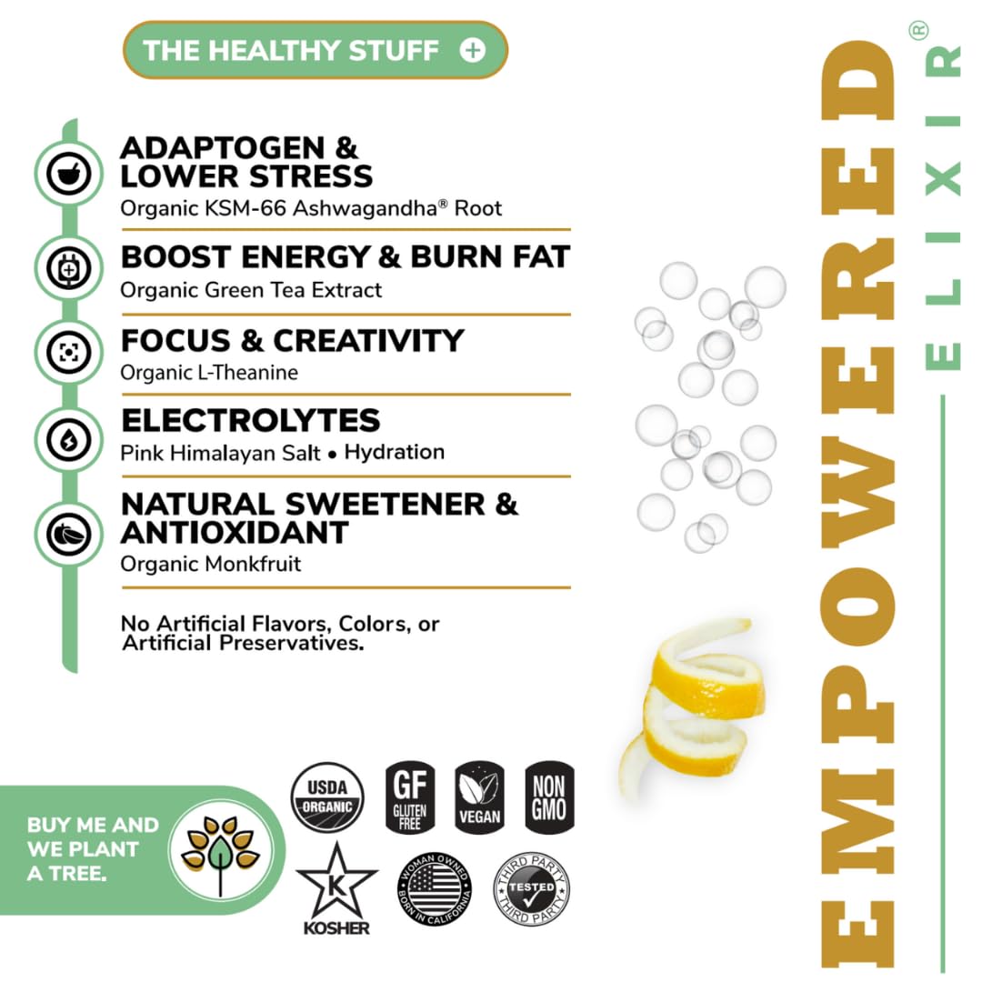 Introducing the mouthwatering Limoncello-infused Empowered Elixir, a carefully crafted premium organic energy drink for focus, clean energy, electrolytes and adaptogens to help you conquer your goals. With ingredients from nature. 0 Calories 0 Sugar 0 Carbs 5mg Sodium **These statements have not been evaluated by the Food and Drug Administration. This product is not intended to diagnose, treat, cure or prevent any disease.