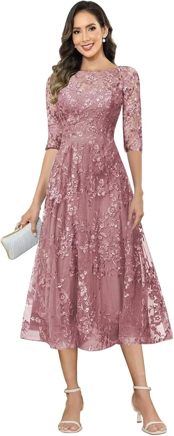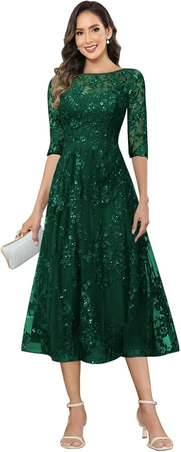 Appliques Long Mother of the Bride Dresses for Women long Sleeves Lace Long Formal Wedding Guest Dress. This elegant lace gown combines timeless elegance with modern sophistication, featuring delicate appliques and graceful half sleeves perfect for the mother of the bride and formal wedding guests.Design Features:Experience exquisite craftsmanship with intricate lace fabric and delicate applique details that create a luxurious textured look. The floor-length formal design features a classic A-line cut that flows gracefully, creating an elongating effect perfect for special occasions.Premium Material & Construction:Crafted from high-quality lace fabric with delicate appliques that add dimension and luxury. The fully lined construction ensures comfort and modesty while maintaining the dress's beautiful drape. Expert tailoring highlights the intricate details and ensures a flawless fit that flatters various body types.Versatile Occasion Wear:Perfect as a mother of the bride dress, mother of the groom dress, or formal wedding guest attire. Ideal for formal weddings, evening galas, anniversary celebrations, holiday parties, black-tie events, and other special occasions requiring sophisticated elegance. The timeless design ensures you'll look appropriately elegant for any formal event.Customize Service:To achieve the perfect fit, we offer a free customization service. Please choose your closest standard size and place the order. Then leave your exact measurements (in inches) in the message box during checkout:A. Full Bust _____ inchB. Waist _____ inchC. Hips _____ inchD. Height: _____inchE. Hollow to floor_____ inchF. Shoulder to Shoulder ____ inchG. Heel height: _____inchSize & Care GuideFor the best result, please carefully compare your body measurements with our detailed size chart before ordering. We recommend dry cleaning to maintain the delicate lace fabric and beautiful applique details.
