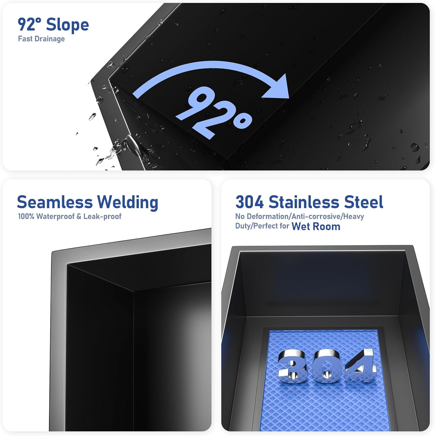 | Product Name | Black Shower Niche, Led Shower Niche, Niche Shower for Bathroom, RGB Niche, Stainless Steel Shower Niche |