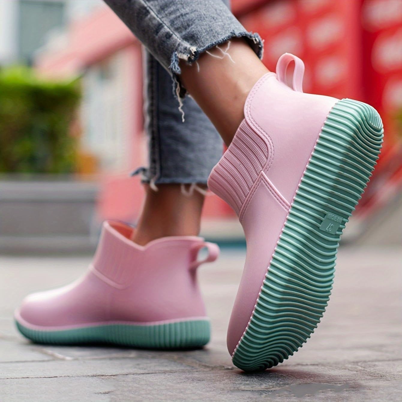 Toe Style:Plain toe Pattern:Geometric All-season:Fall Non-slip Design: The sole of the rain boots is made of high-quality rubber, which provides excellent grip and slip resistance, making it perfect for outdoor working and rainy days. Waterproof Material: Made of waterproof material, these rain boots will keep your feet dry and comfortable even in heavy rain. Easy to Wear: Slip-on design makes it easy to put on and take off, saving you time and effort. Solid Color: The simple and elegant solid color design is versatile and easy to match with different outfits. Durable and Long-lasting: These rain boots are made of high-quality materials, which ensures their durability and long-lasting performance.
