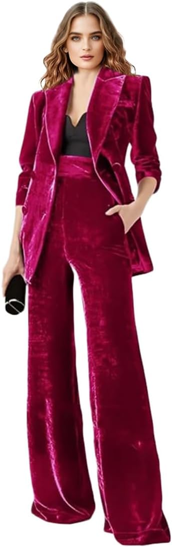 Botong Womens Velvet Suit 2 PC Double Breasted Pants Suit Peak Lapel Formal Tuxedos Business Outfit. Suitable Ocasion: Nice choice for Wedding Party,Dinner,Prom Party,Dating,Business Meetings,Office Events,Interviews,Professional Conferences,Formal Social Gatherings and Any Other Formal Occasion. Material: 78% Velvet and 22% Poyester. Features: Double Breasted Slim Fit Velvet Prom Party Suit,Peak Lapel,Two Flap Pockets,Zipped and Buttons Closure Pants,Elastic Waistband. Color: Black, Dark Green, Purple, Burgundy,Navy,Sage Green,Blue,Teal,White,Fuchsia,Royal Blue and so on. Size: XS, S, M, L, XL,XXL Please choose the size refer to the below measurements details.All the measurements are in inches. Size: X-Small: Jacket Length 26",Bust 35",Shoulder 15.5", Sleeves 22", Pants Length 39",Waist 27",Hips 36" Size: Small: Jacket Length 27",Bust 37",Shoulder 16", Sleeves 22.5", Pants Length 40",Waist 29", Hips 38.5" Size: Medium: Jacket Length 28",Bust 39", Shoulder 16.5", Sleeves 23.5", Pants Length 40",Waist 31.5", Hips 41" Size: Large: Jacket Length 28",Bust 42",Shoulder 17", Sleeves 24", Pants Length 40.5",Waist 34", Hips 43" Size: X-Large: Jacket Length 29",Bust 44", Shoulder 17.5", Sleeves 24.5", Pants Length 41",Waist 36",Hips 45" Size: XX-Large: Jacket Length 29",Bust 47",Shoulder 18", Sleeves 25", Pants Length 42",Waist 38.5", Hips 48" Tips: 1.there will be 0.5-1 inch difference on the size due to the manual measurements,hope you can understand. 2.There might be slight color difference due to the lights and screen. 3.Our Suits can also be custom made,Please feel free to contact us if any questions.
