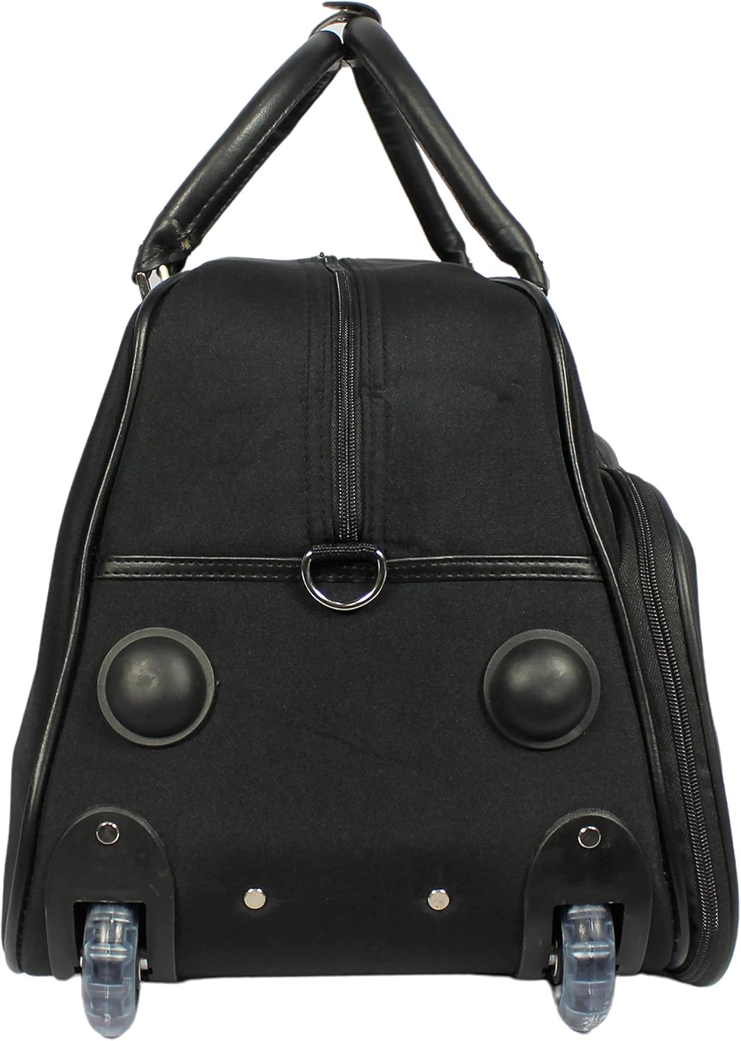 This fashion-forward World Traveler rolling duffel bag makes a fashion statement and it is ready for anything. Offering a fully lined interior, retractable handle and more must-have features, this bag has the makings of an ideal travel companion. Take on whatever travel may bring with this rolling duffel bag.